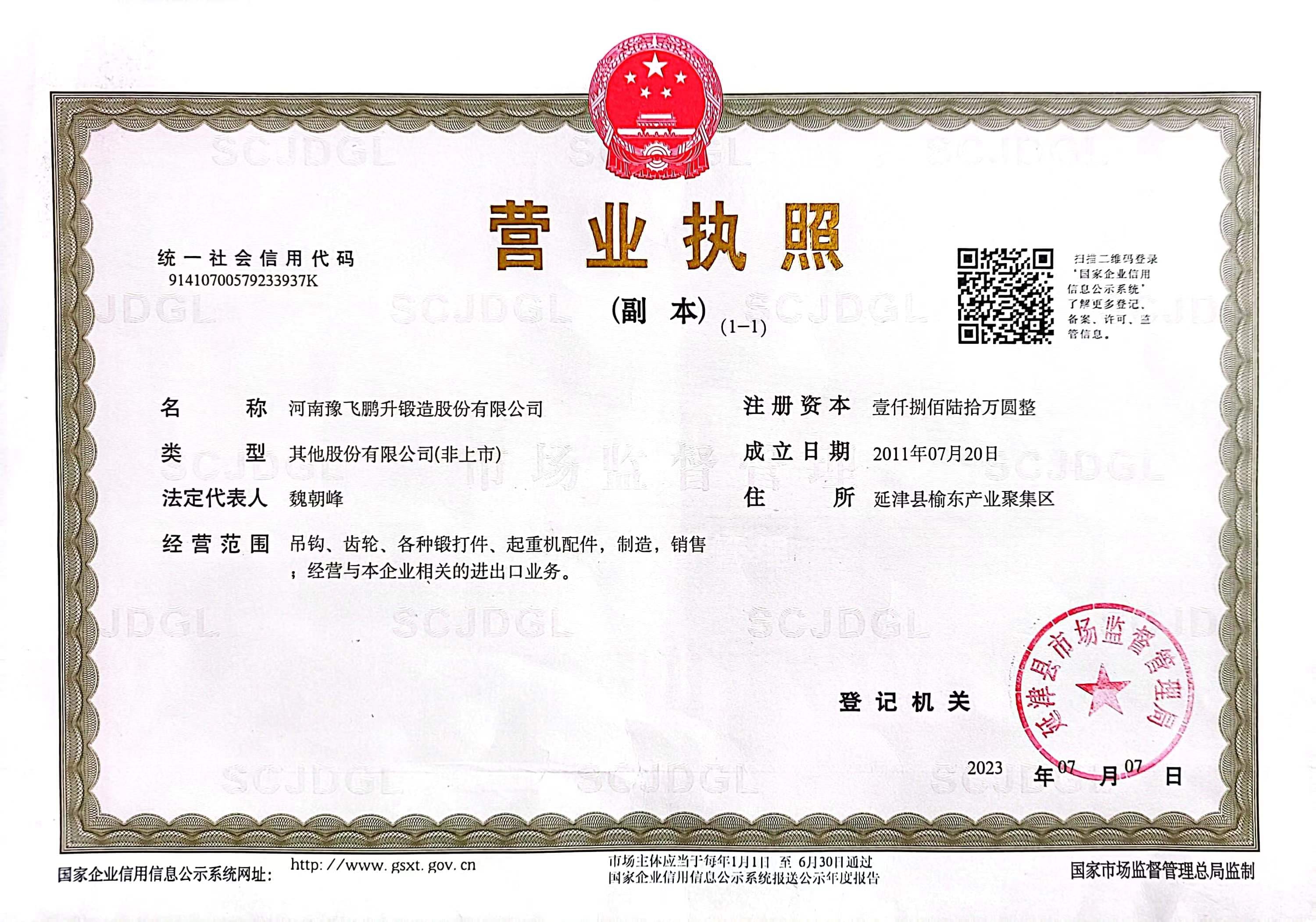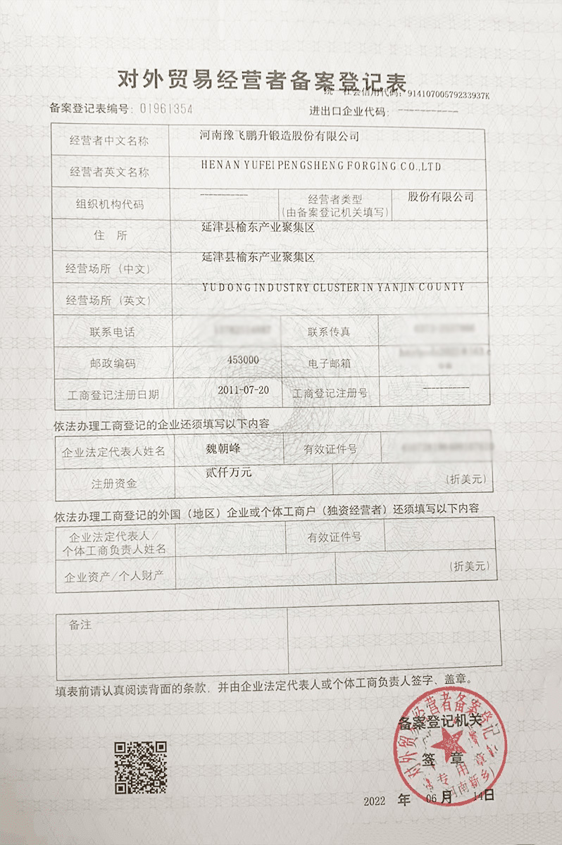 河南豫飛鵬升鍛造股份有限公司坐落于延津縣榆東產業聚集區,公司現有生產廠房1.6萬平方米,擁有員工百余人,其中高中級技術、管理36人。