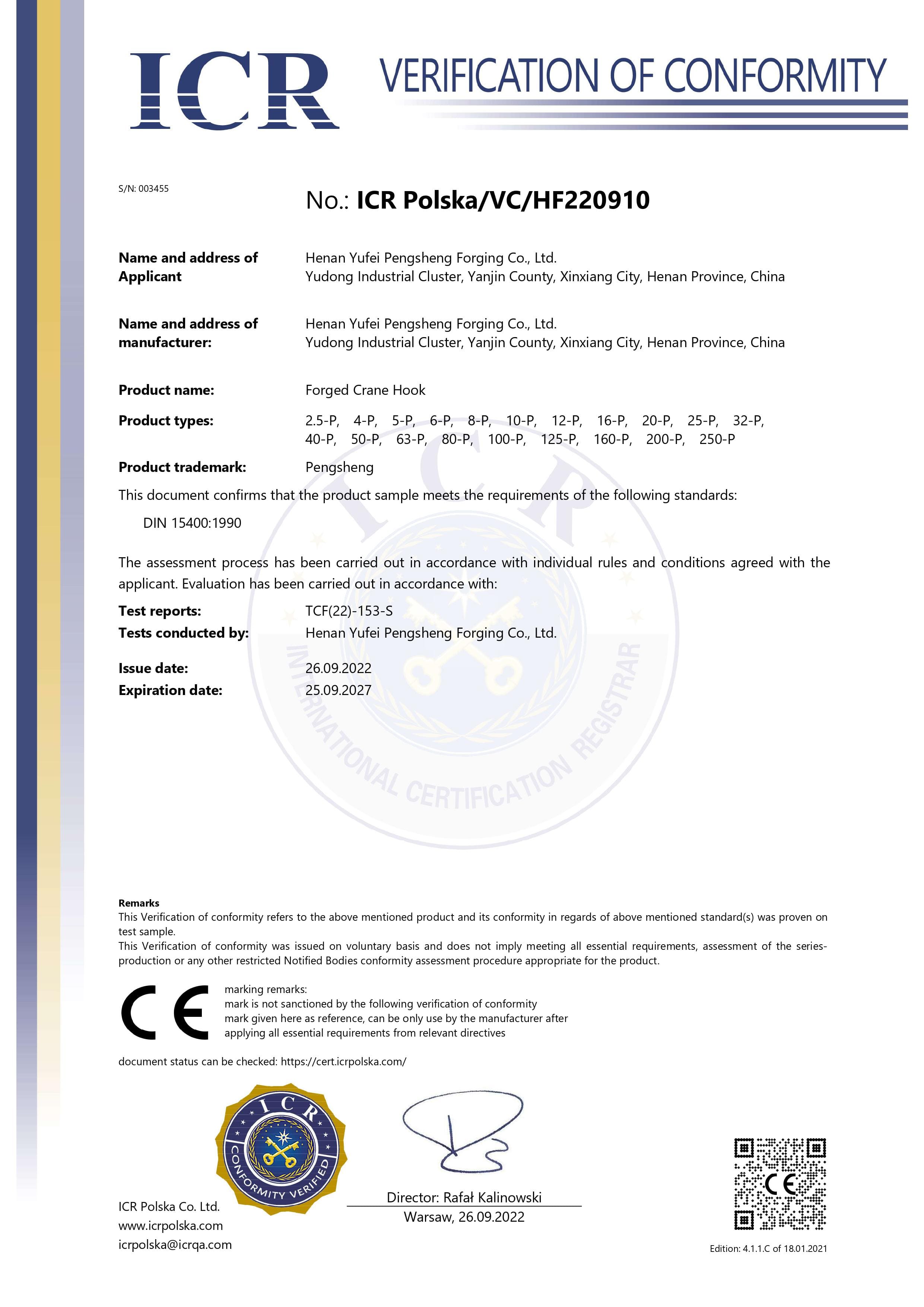 公司產品質量上乘,鵬升牌起重吊鉤及吊鉤組尤以內在和外觀質量優良而著稱,為國內吊鉤行業知名品牌,暢銷上海、遼寧、吉林、山西、山東、河北、湖南、安徽、四川、江蘇、廣東等30個省市自治區,出口西班牙、日本、俄羅斯等國家,與國內外眾多知名廠商如科尼、德馬格、中聯重科、三一重工、徐工、大連華銳、巨力索具、太原重工、青山集團、柳工、衛華等建立了長期合作關系。
